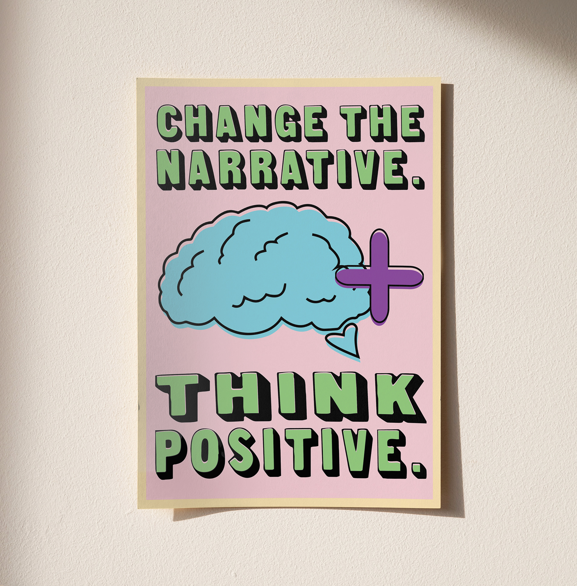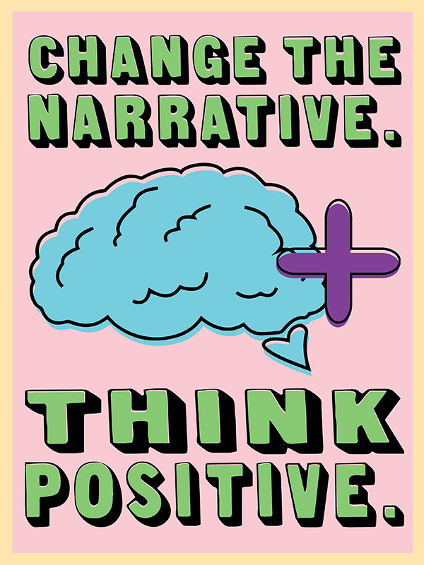 Bold typography, vibrant colors and fun illustrations aim to make a change in how the public thinks. Choosing to step away from and overcome the negative mindset.